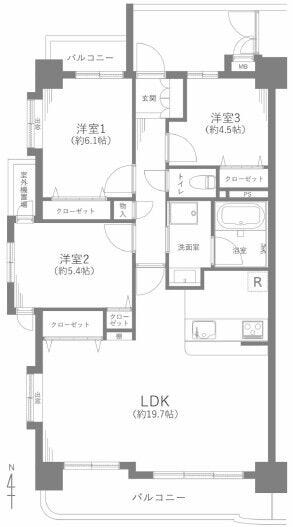 3LDK♪南向きLDK19.7帖♪4LDKに変更も可能(別途費用必要)♪全居室収納♪LDKにも便利なくろーぜっと付き♪