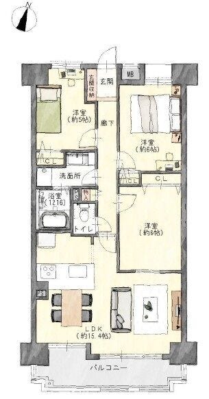 | 主要採光 | 南向 | バルコニー | 南向9.20㎡ |